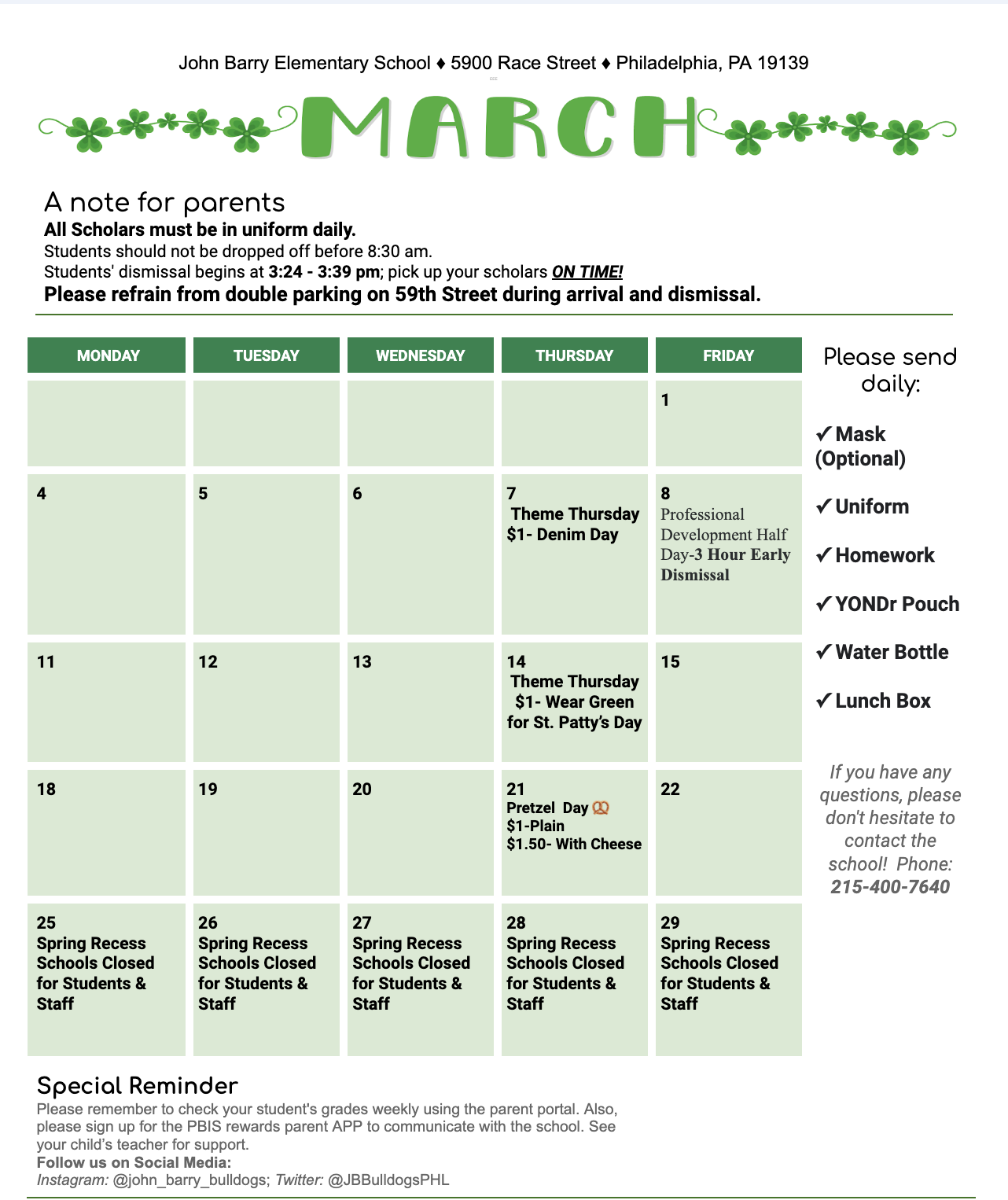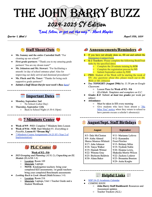 This is the Barry Buzz for the school and provides information about what is going on at school.