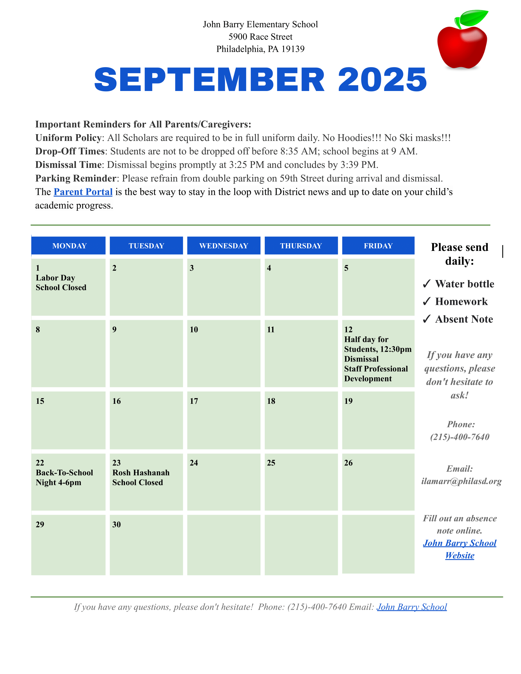 This is the Barry Buzz for the school and provides information about what is going on at school.